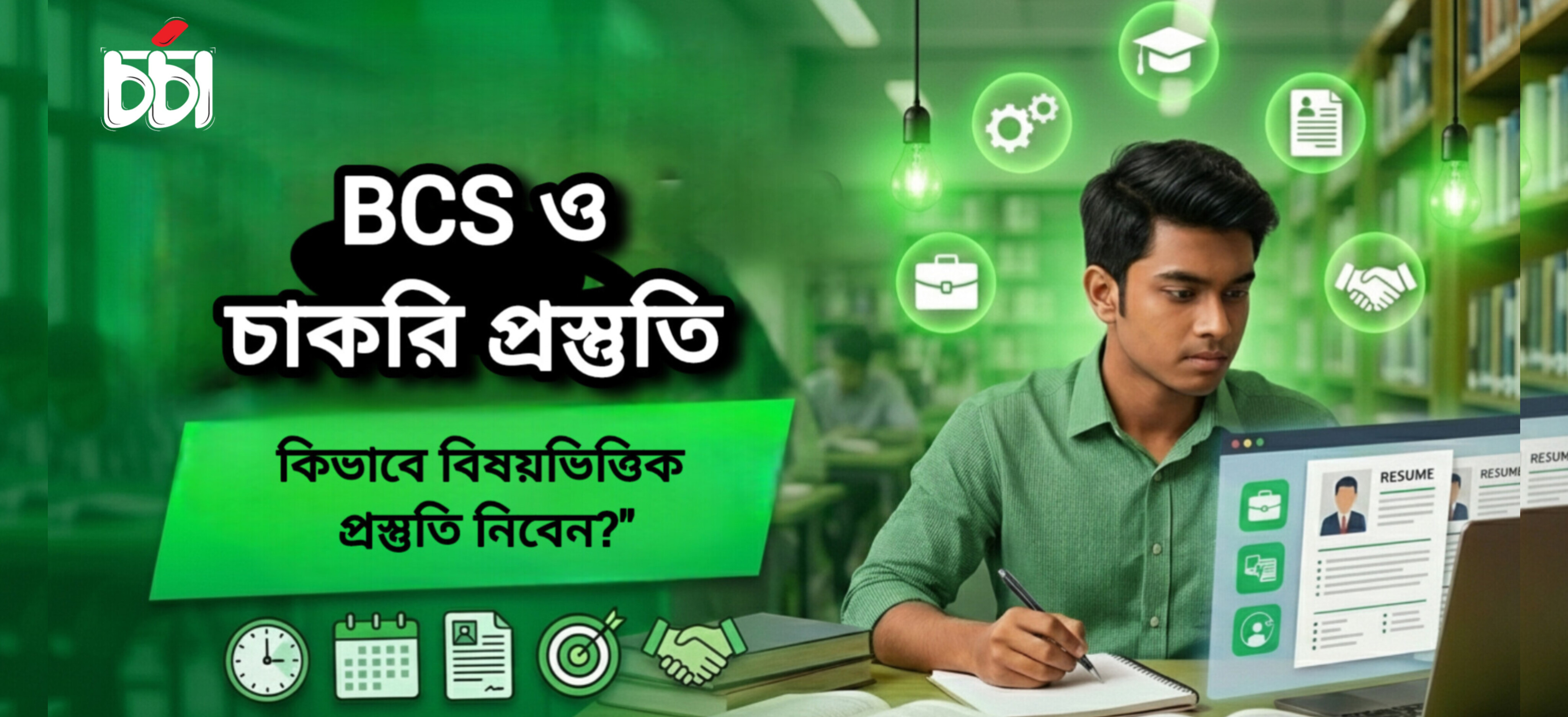 চাকরি পরীক্ষায় সফল হতে হলে বিষয়ভিত্তিক প্রস্তুতি অত্যন্ত গুরুত্বপূর্ণ। আপনার লক্ষ্য অনুযায়ী প্রস্তুতি নেওয়া উচিত, এবং প্রতিটি বিষয়ের জন্য আলাদা সময় ও কৌশল নির্ধারণ করা উচিত। চাকরি পরীক্ষায় শীর্ষে উঠতে হলে সময়মতো প্রস্তুতি এবং নিয়মিত অধ্যায়ন অপরিহার্য। এমনকি যদি আপনার পরীক্ষায় প্রস্তুতি সঠিকভাবে সাজানো থাকে, তবে আপনি কোনো পরীক্ষা দিয়ে সফল হতে পারবেন—এটি নিশ্চিত।