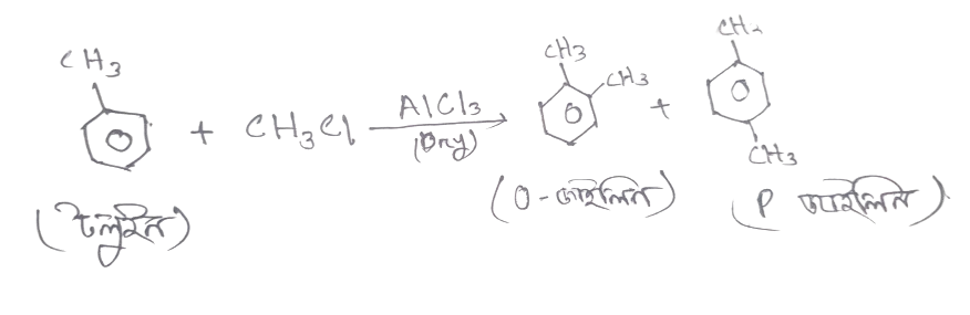 অনার্দ্র AICI3 এর উপস্থিতিতে মিথাইল ক্লোরাইডের সাথে টলুইনের বিক্রিয়ায় কি উৎপন্ন হবে?