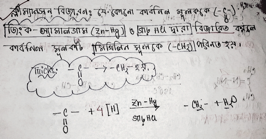 অ্যালডিহাইড ও কিটোন Zn / Hg এবং HCl এর সহিত বিক্রিয়া করে হাইড্রোকার্বন তৈরী করে। বিক্রিয়াটিকে বলা হয়-