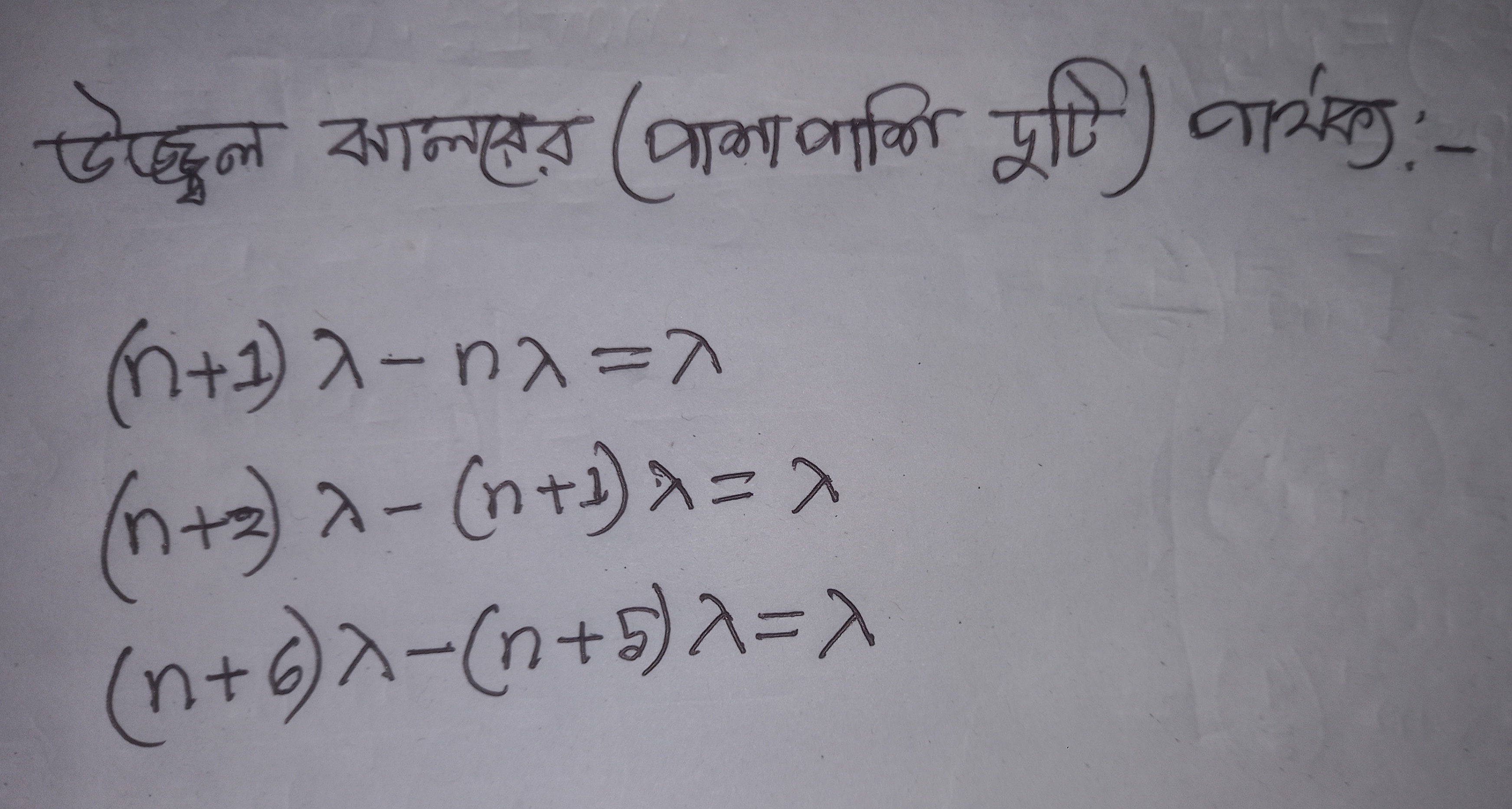 এখন, দুটি পাশাপাশি উজ্জ্বল ঝালরের জন্য তাদের পথ পার্থক্যের মধ্যে পার্থক্য তরঙ্গদৈর্ঘ্য λ এর সমান হবে। কারণ, একটি উজ্জ্বল ঝালর থেকে পরবর্তী উজ্জ্বল ঝালরের জন্য পথ পার্থক্য λ বেশি থাকে।