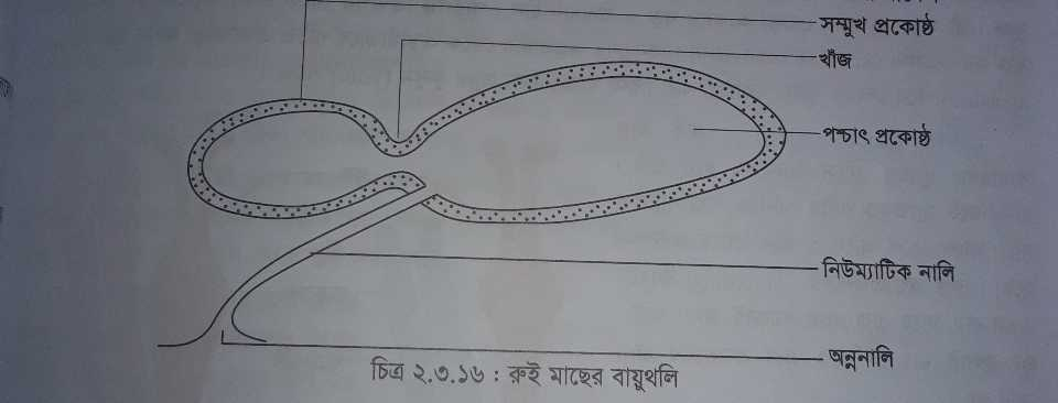 রুই মাছের রক্ত সংবহন তন্ত্র, শ্বসনতন্র ও বায়ুথলির গঠন
