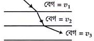 একটি আলোক রশ্মি চিত্রে প্রদর্শিত তিনটি মাধ্যম দিয়ে অতিক্রম করছে।বেগগুলোর কোন ক্রমটি সঠিক?