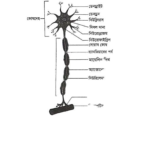 একটি স্নায়ুকোষের গঠন, চিত্রসহ বর্ণনা করো।