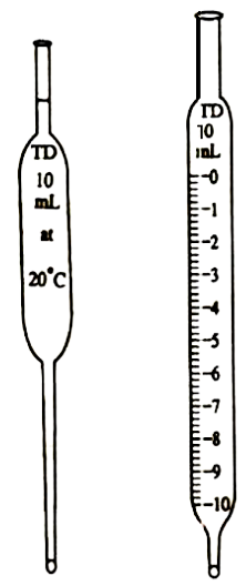 পিপেট প্রধানত দুই প্রকার – সাধারণ পিপেট(বামে) ও দাগাঙ্কিত পিপেট(ডানে) ।