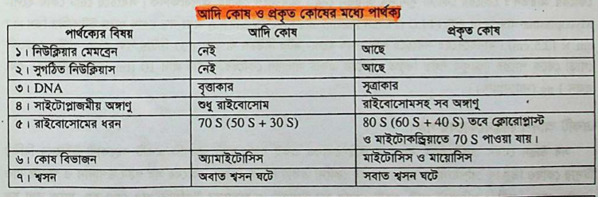 কোষ তত্ত্ব কী? আদিকোষ ও প্রকৃতকোষের মধ্যে পার্থক্য লিখ।