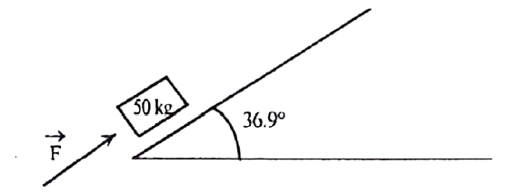50 kg ভরের একটি বস্তুকে নিচের চিত্রানুসারে একটি অমসৃণ তলের (ঘর্ষণ গুণাঙ্ক = 0.2) উপর দিয়ে বল প্রয়োগে সরানো হলো।