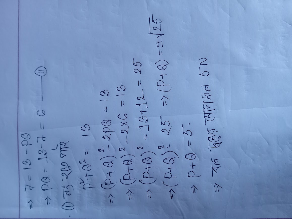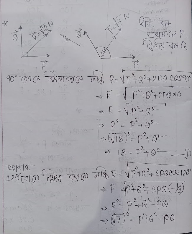 দুইটি বল পরম্পর এক সমকোণে ক্রিয়ারত থাকলে তাদের লব্ধি √13 N; আবার তারা 120° কোণে ক্রিয়ারত থাকলে তাদের লব্ধি √7 N। বলদ্বয়ের সমষ্টি কত?