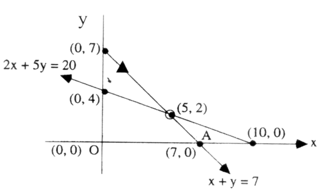 x+y ≥ 7, 2x+5y ≥ 20, x ≥ 0 এবং y ≥ 0।