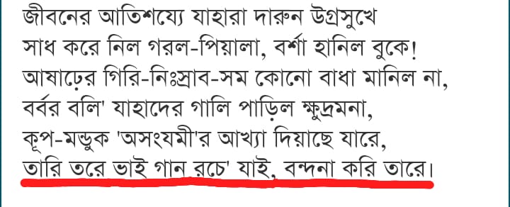 'বর্বর বলি যাহাদের গালি পাড়িল ক্ষুদ্রমনা, কূপমণ্ডুক অসংযমী'র আখ্যা দিয়াছে যারে' পরের চরণ কোনটি?