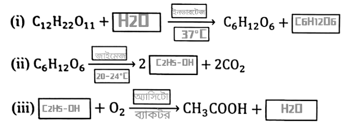মল্ট-ভিনেগার প্রস্তুতির বিক্রিয়ার শূন্যস্থানগুলাে পূরণ কর-
