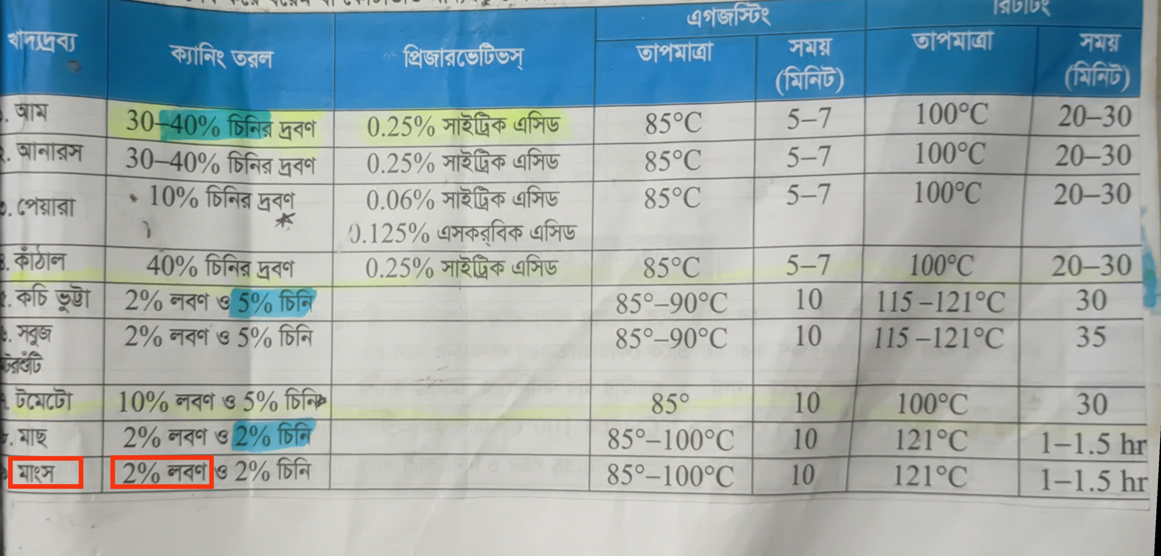 মাংস কৌটাজাতকরণে 2% লবণ যোগ করা হয়।