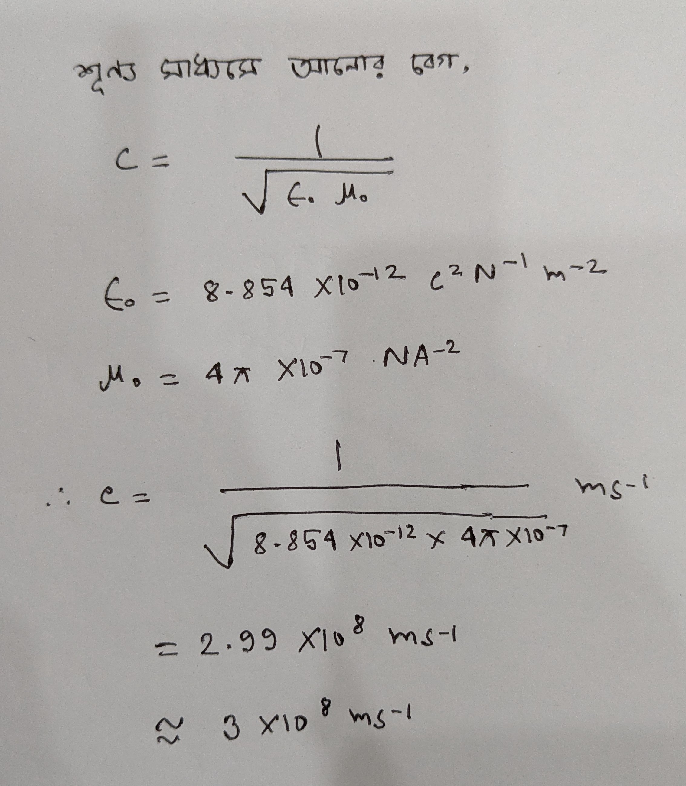 শূন্য মাধ্যমে আলোর বেগ কত মি/সে.?