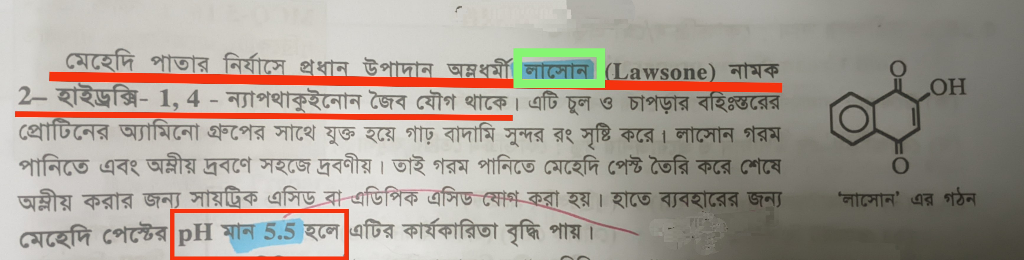 হাত, চুল বা শরীরের বিভিন্ন অফু অঙ্গ রঙিন সাজ এর জন্য ব্যবহারিত মেহেদী এর সঙ্গে নিচের কোনটি জড়িত?