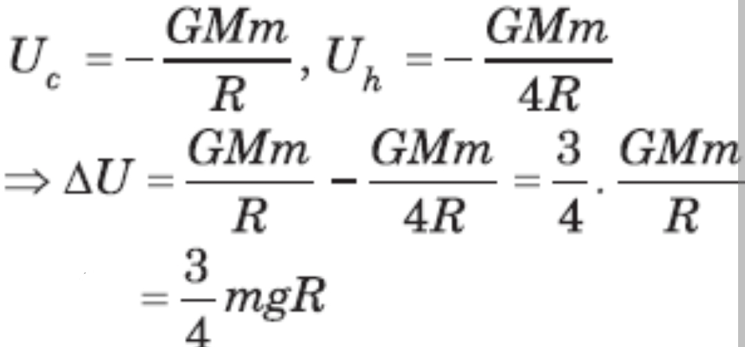 A body of mass is lifted up from the surface of earth to a height three times the radius of the earth .The change in potential energy of the body is
