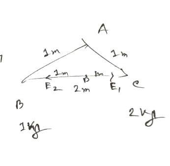 B ও C বিন্দুতে যথাক্রমে m1= 1kg, m2=2kg ভরের দুটি বস্তু আছে।