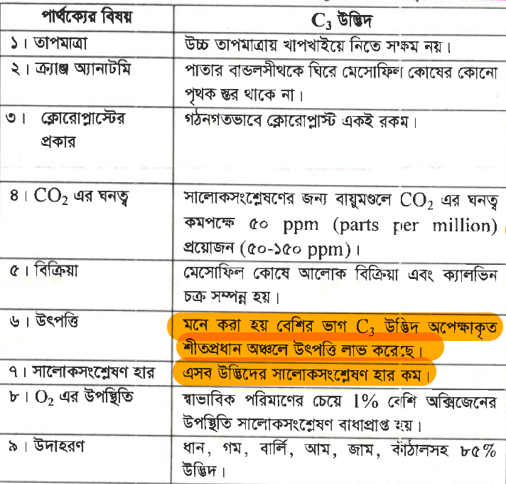 C3 উদ্ভিদের বৈশিষ্ট্য-