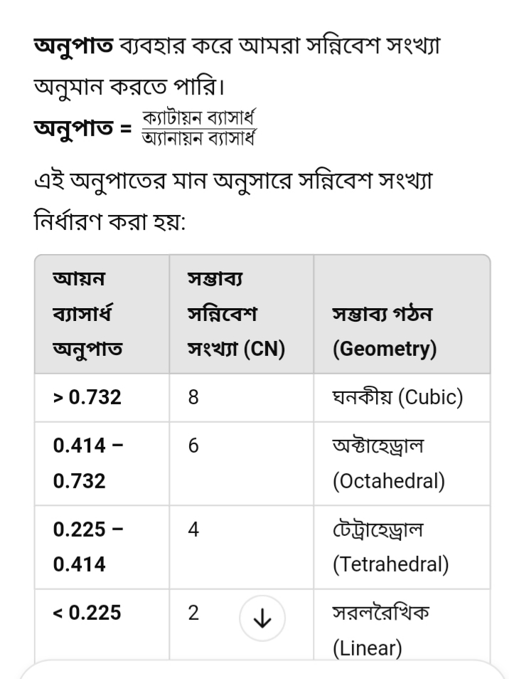 Cs+ এবং Cl- আয়নদ্বয়ের ব্যাসার্ধ যথাক্রমে 167 ও 181 PM হলে CsCl স্ফটিকের সন্নিবেশ সংখ্যা কত?