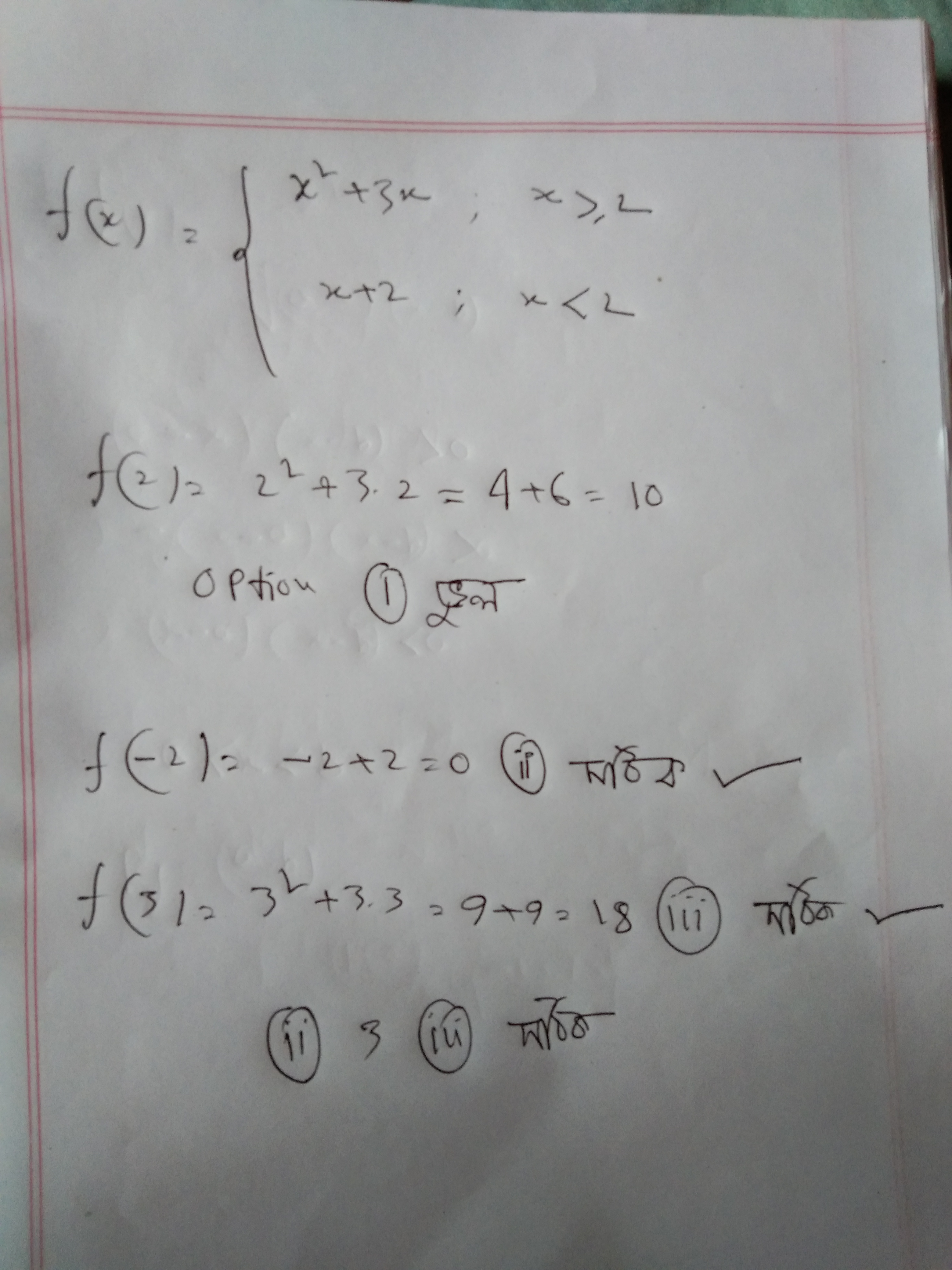 (i) f(2) এর মান=4; (ii) f(-2) এর মান =0; (iii) f(3) এর মান=18