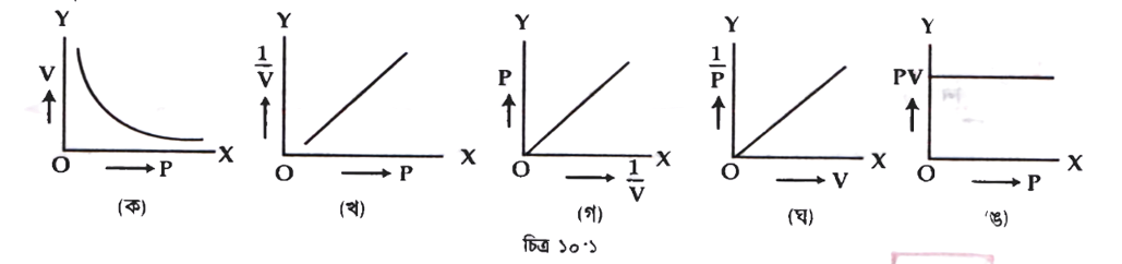 তাপমাত্রা স্থির থাকলে নির্দিষ্ট ভরের গ্যাসের আয়তন (V) বনাম চাপ (P) এর লেখচিত্রের প্রকৃতি কোনটি?