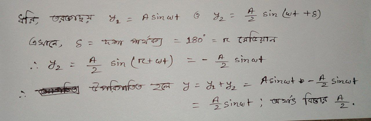 তরঙ্গদৈর্ঘ্য বিশিষ্ট দুটি তরঙ্গের বিস্তার A ও A/2 । তরঙ্গদ্বয় 180° দশা বৈষম্য নিয়ে কোনো মাধ্যমে আপতিত হলে যে নতুন তরঙ্গের সৃষ্টি হবে তার বিস্তার -