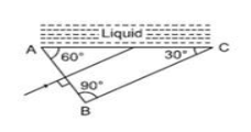 Light is incident normally on face AB of a prism as shown in figure. A liquid of refractive index is placed on the face AC of the prism. The prism is made of glass of refractive index 3/2. The limit of for which total internal reflection takes place on face AC is :