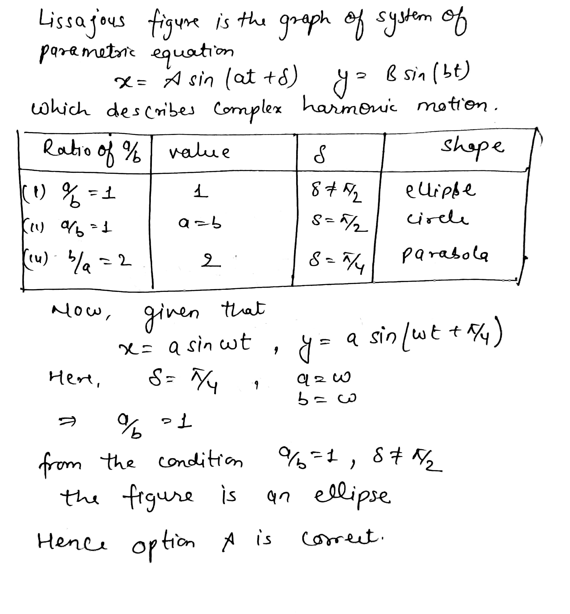 Lissajous figure obtained by combining x=ASin and y=ASin will be