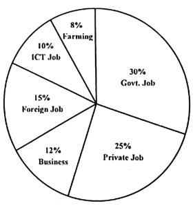 Look at the following pie-chart. It shows the choice of professions by different educated youths in Bangladesh. Now, describe the pie-chart in your own words. You are advised to highlight and summarize information given in the pie-chart.
