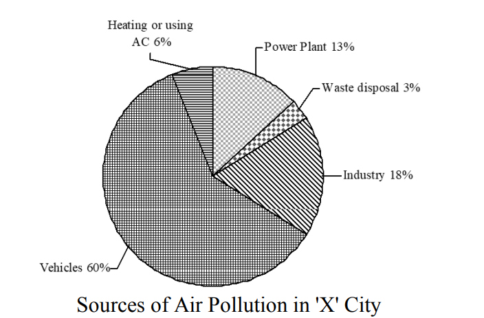 The chart below shows the sources of air pollution in a city. Describe the chart in 150 words. You should highlight and summarize the information given in the chart:—