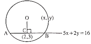 The locus of the center of the circles such that the point (2, 3) is the midpoint of the chord: 5x+2y=16 is-