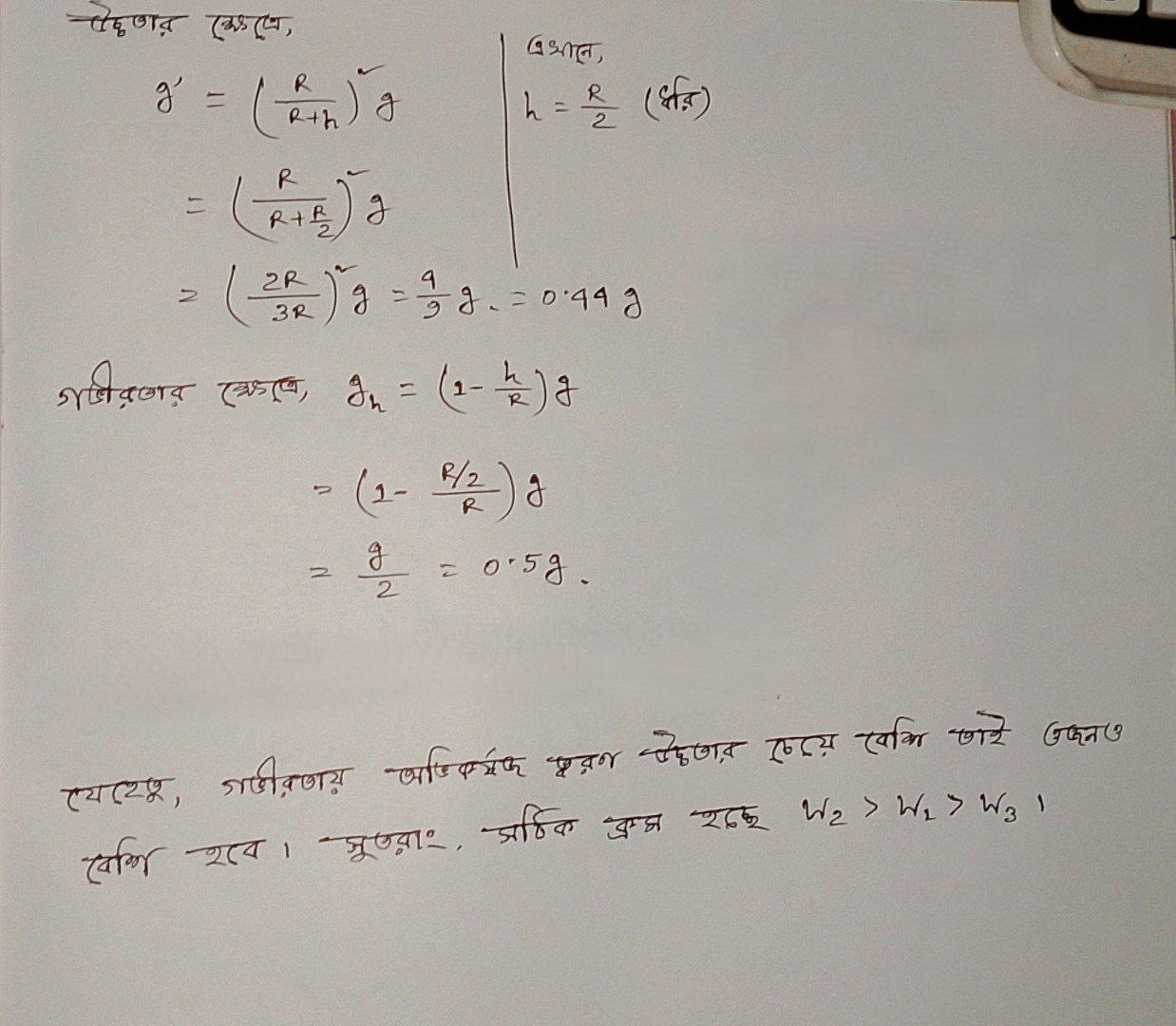 অভিকর্ষজ ত্বরণ g এর পরিবর্তন