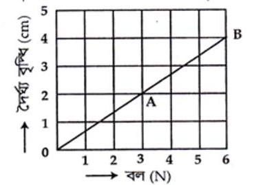 নিচের লেখচিত্রটিতে একটি স্প্রিং-এ প্রযুক্ত বলের সাথে দৈর্ঘ্য বৃদ্ধির পরিবর্তন দেখানো হয়েছে।