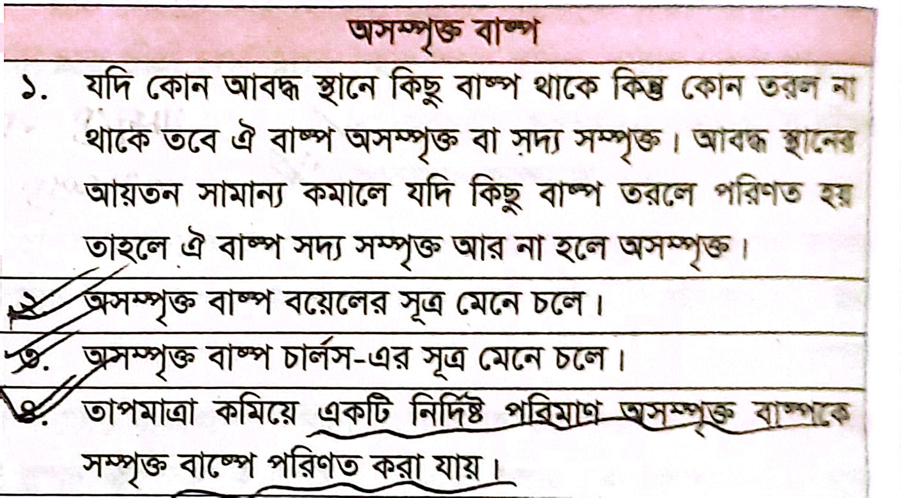 অসম্পৃক্ত বাষ্প বয়েল ও চার্লস এর সূত্র মেনে চলে।