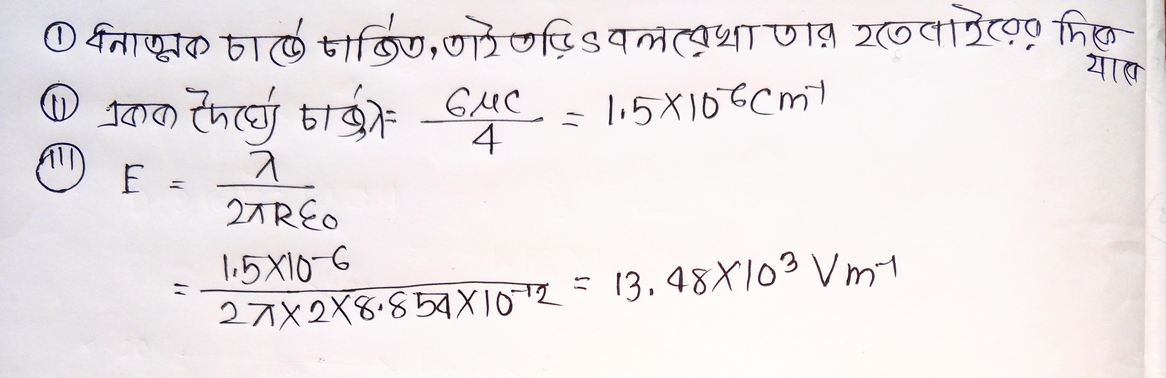 iii. তারটির কেন্দ্র হতে 2m দূরে তড়িৎ প্রাবল্যের মান