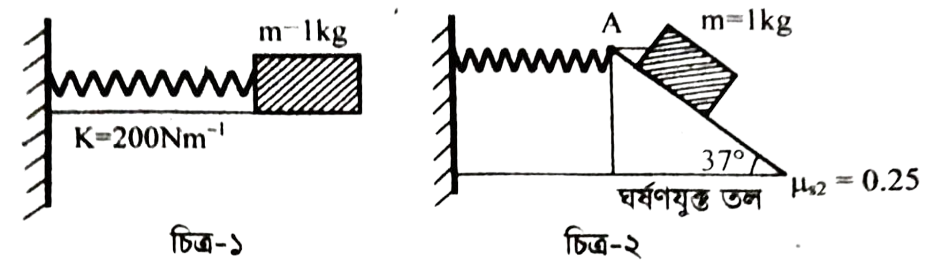 চিত্র-২ এ একই স্প্রিংযুক্ত ব্লককে A বিন্দু হতে ছেড়ে দেয়া হলে 10 cm দূরত্ব অতিক্রম করে থেমে যায়।