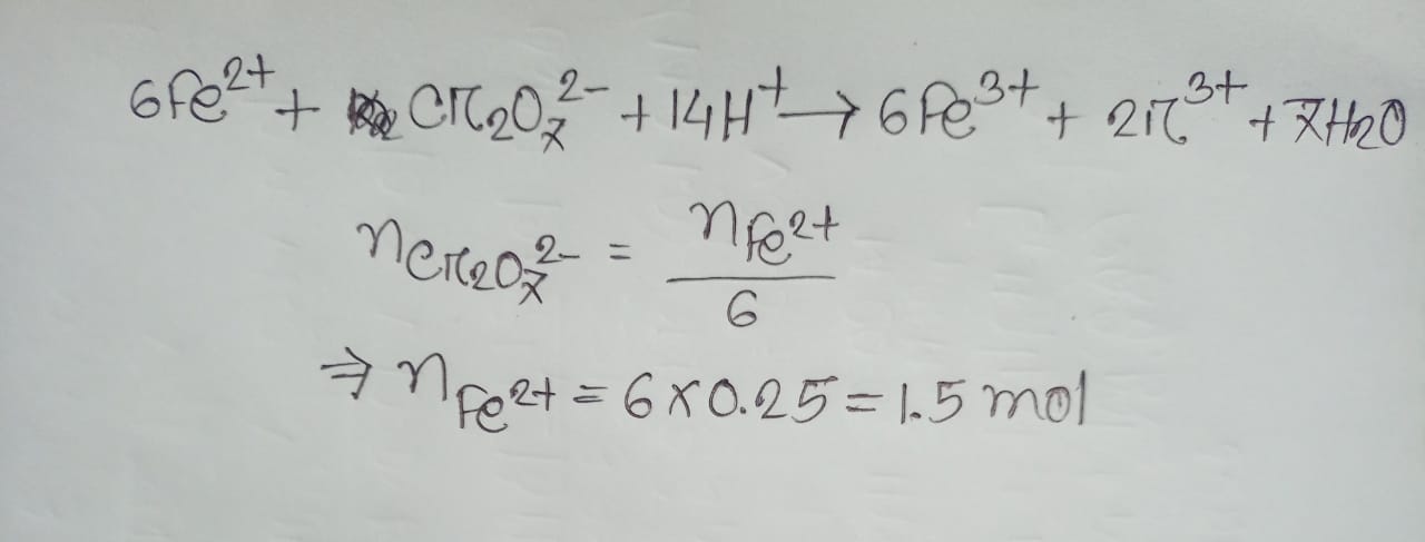 এসিডীয় মাধ্যমে 0.25 মোল Cr2O7 2- জারিত করে কত মোল Fe2+ কে?
