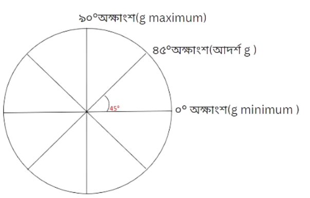 90 অক্ষাংশে অভিকর্ষজ ত্বরণ (g)এর মান সবচেয়ে বেশি ৯.৮৩২১৭ ms−2