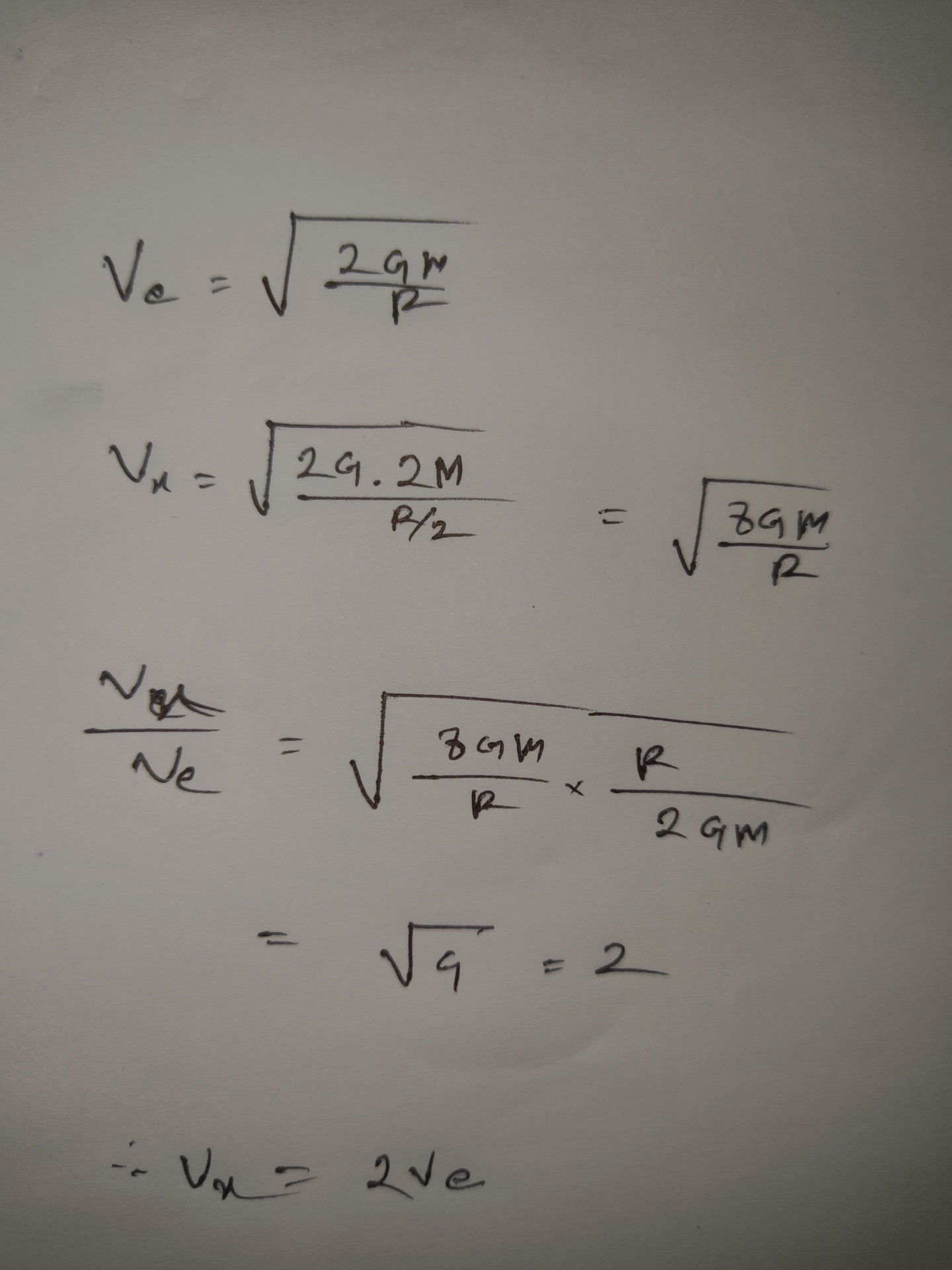 কোন একটি গ্রহের ভর পৃথিবীর ভরের দ্বিগুণ এবং ব্যাসার্ধ পৃথিবীর ব্যাসার্ধের অর্ধেক। উক্ত গ্রহের পৃষ্ঠে মুক্তিবেগ পৃথিবীর কত গুণ?