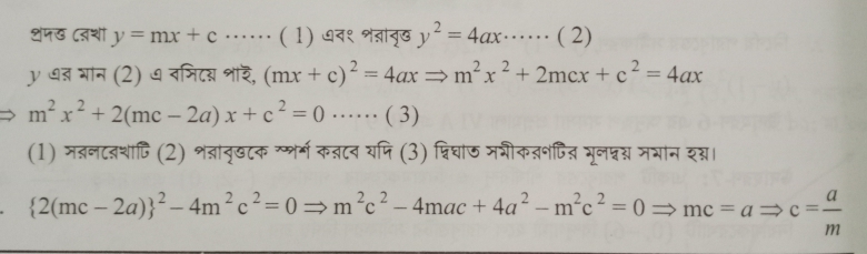 কোন শর্তে y=mx+c সরলরেখাটি y2=4ax পরাবৃত্তের স্পর্শক হবে ?
