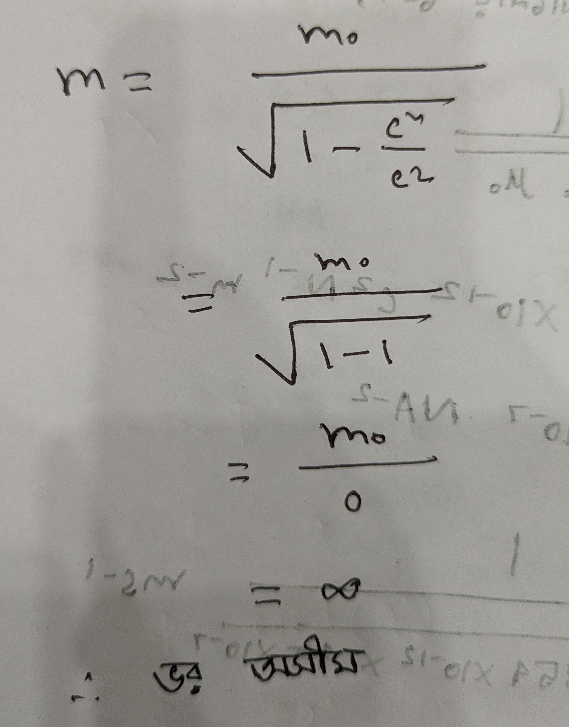 কোনো বস্তুকণা আলোর দ্রুতিতে চললে এর ভর __