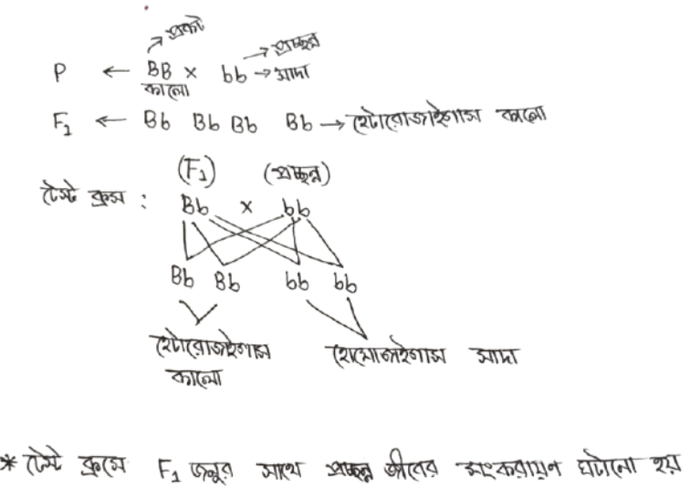 টেস্ট ক্রস এর ক্ষেত্রে অপত্য বংশধরের ফিনোটাইপ হলো-