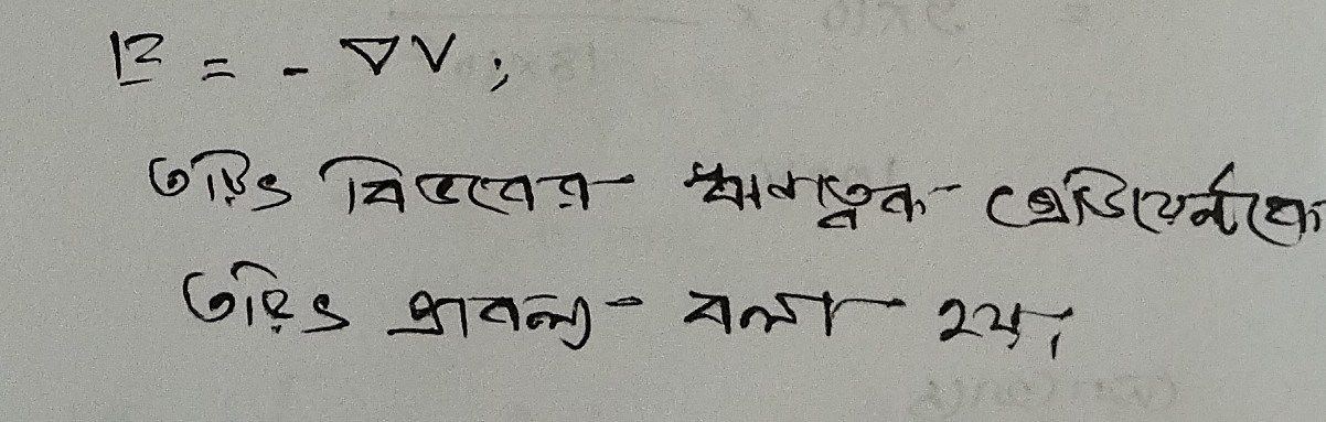 তড়িৎ প্রাবল্য ও তড়িৎবিভবের মধ্যে সম্পর্ক নিম্নের কোনটি?