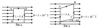 উভয় চিত্রে ABCD আয়তাকার কুণ্ডলীর দৈর্ঘ্য 15 cm এবং প্রস্থ 10 cm । কুণ্ডলীর পাকসংখ্যা 500।
