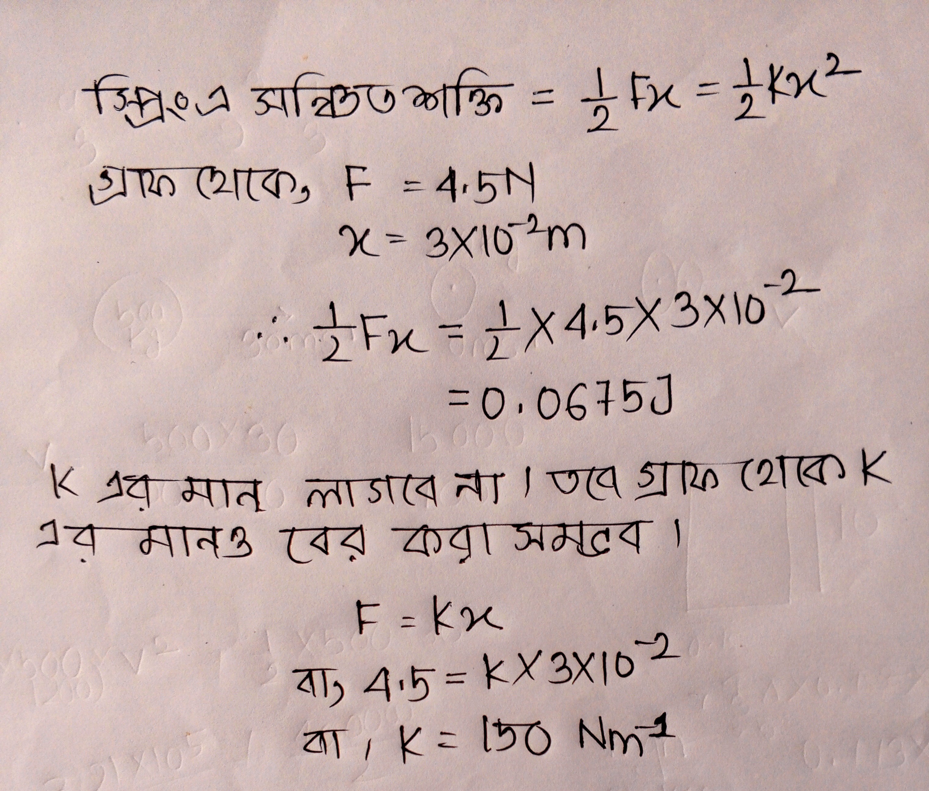 স্প্রিংটির দৈর্ঘ্য বৃদ্ধি 3cm হলে স্প্রিং-এ সঞ্চিত শক্তির পরিমাণ কত ?