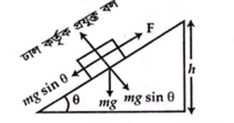 বক্সটিকে ঢালের ওপরের দিকে ধ্রুববেগে গতিশীল করতে এর ওপর ঢালের সমান্তরালে F বল প্রয়োগ করা হলো।