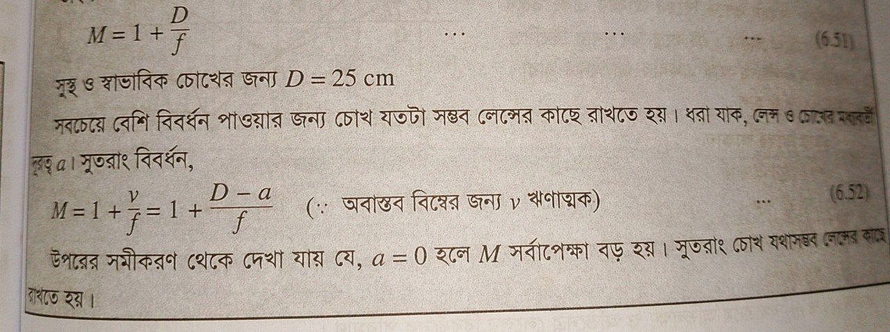 সরল অণুবীক্ষণ যন্ত্রে বিবর্ধনের ক্ষেত্রে নিম্নের কোনটি সঠিক ?