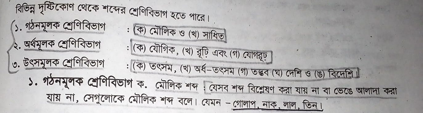 বাংলা ভাষার শব্দভান্ডার ও শব্দের শ্রেণিবিভাগ