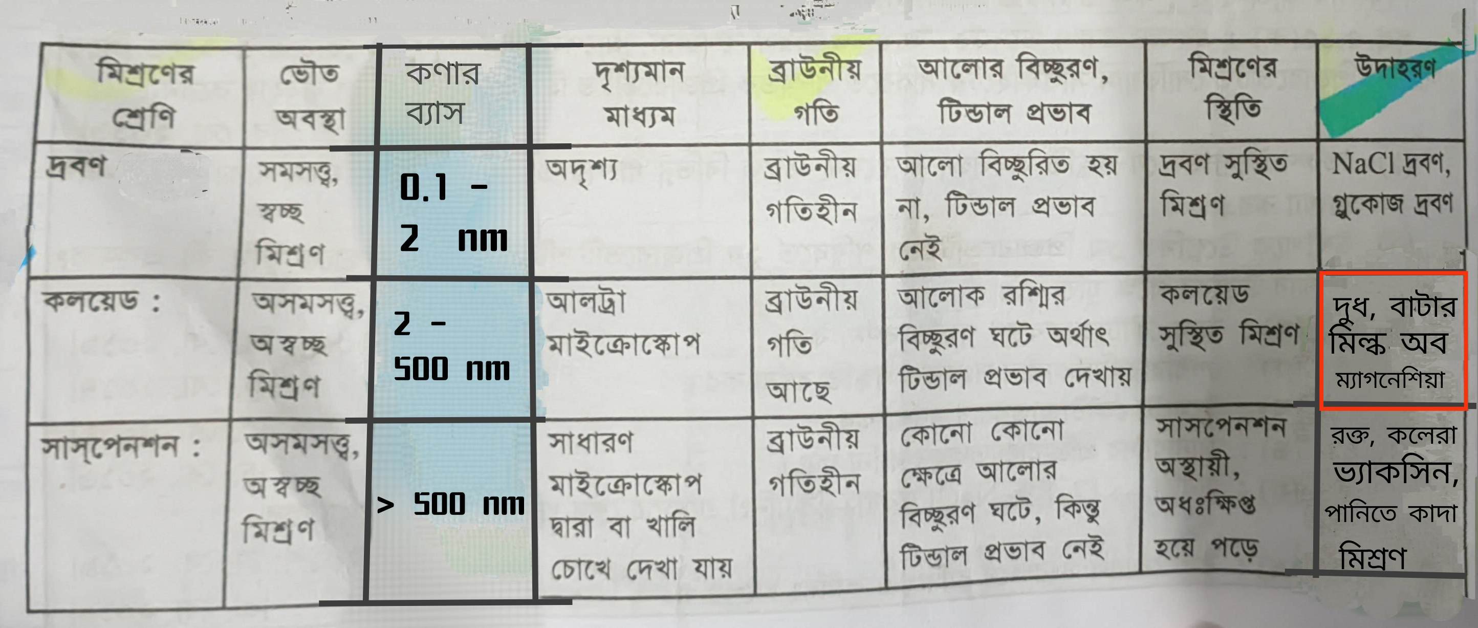 পানিতে চিনির দ্রবণ = সমসত্ত্ব দ্রবণ ≠ কলয়েড