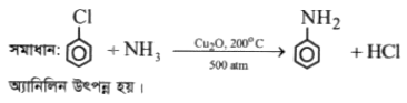 c) কিউপ্রাস অক্সাইডের উপস্থিতিতে উচ্চ তাপমাত্রায়ও চাপে ক্লোরো বেনজিন অ্যামোনিয়ার সাথে বিক্রিয়া করলে।