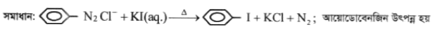 b) ডায়াজোনিয়াম লবণের জলীয় দ্রবণকে অতিরিক্ত KI এর সহিত উত্তপ্ত করিলে।