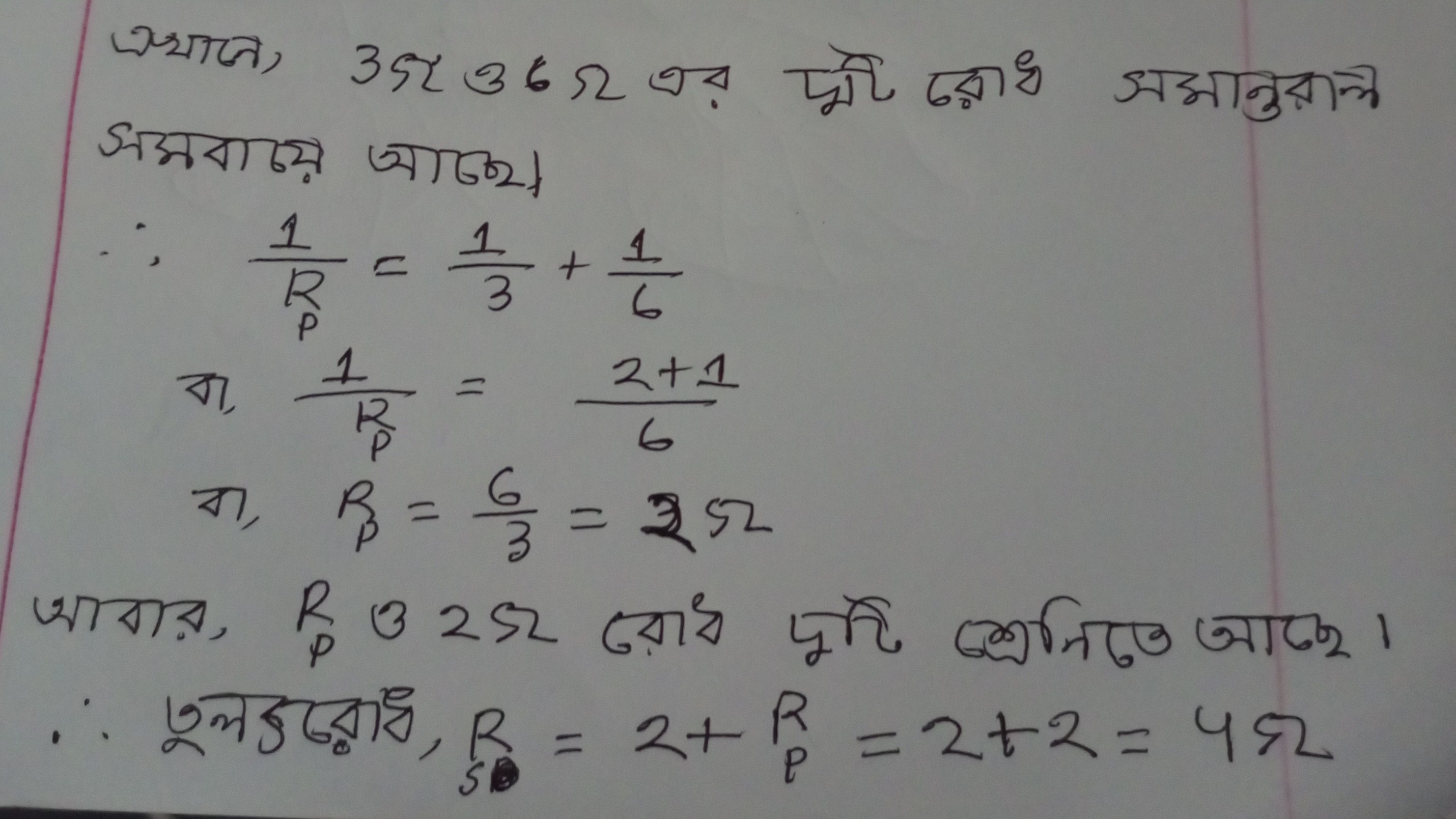 সমান্তরাল সমবায়ে তুল্যরোধ